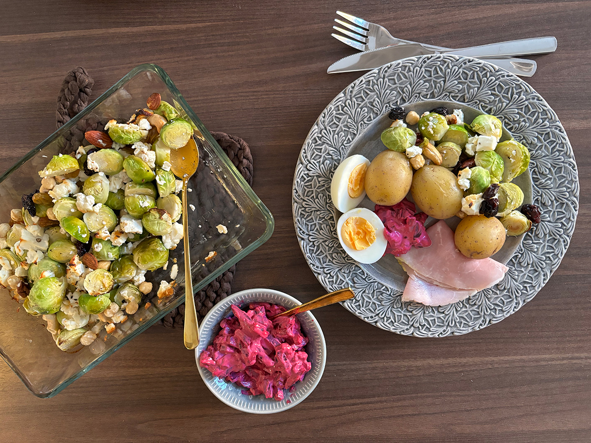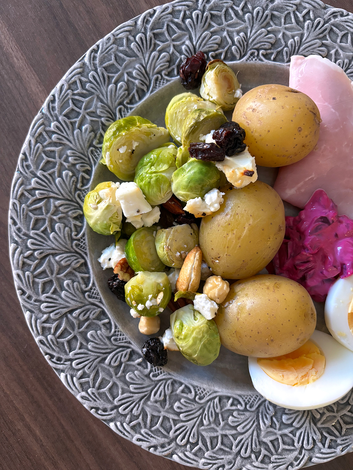 Saknar du något gott, grönt på julbordet? Eller tycker traditionell kokt brysselkål är lite trist? Här hittar du ett festligare recept på brysselkål med fetaost och nötter.