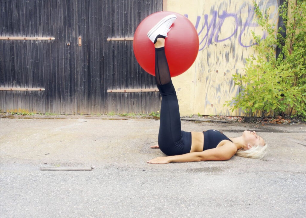 - Svårare: Utför samma benlyft som innan, men placera en boll mellan fötterna och hålls på plats med hjälp av benmusklerna.